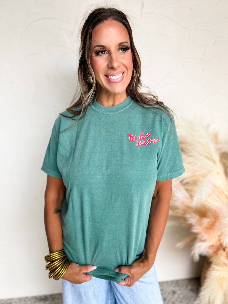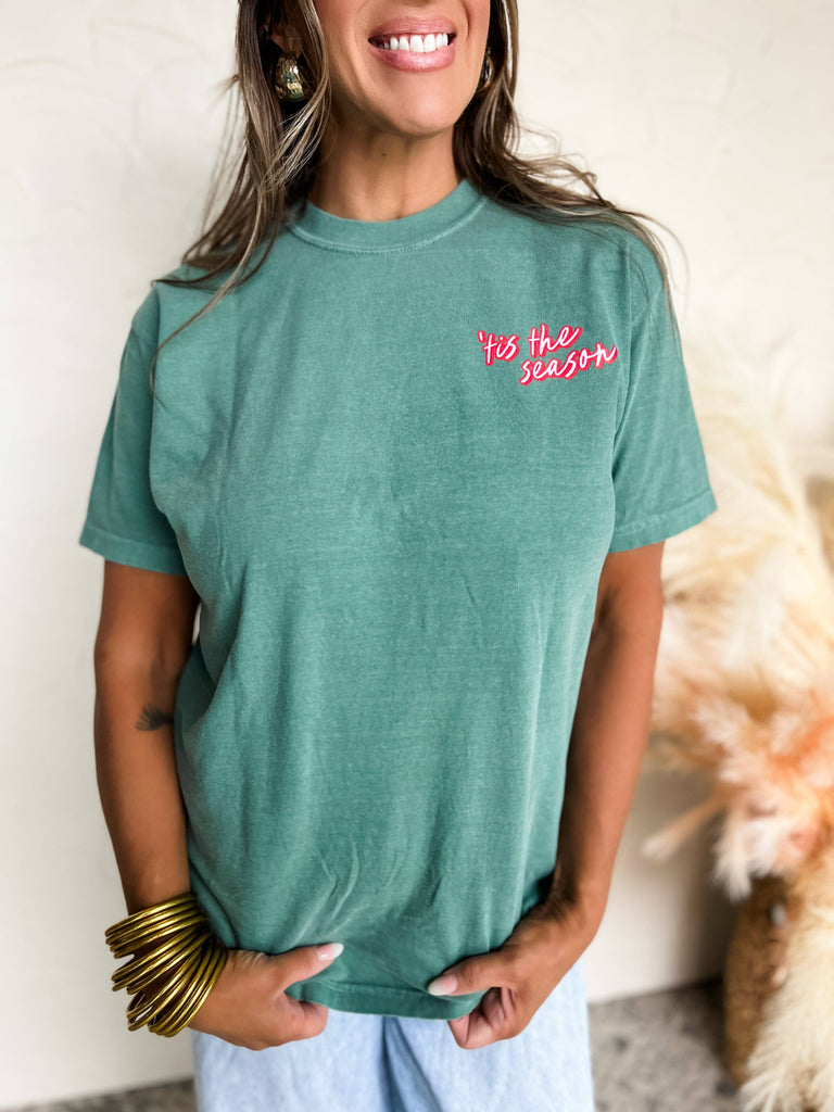 Because festive looks good on you 🎄 This tee brings all the holiday cheer — cozy green, playful Christmas graphics, and a relaxed fit that’s made for cookie baking, tree decorating, or last-minute Target runs with a peppermint mocha in hand.